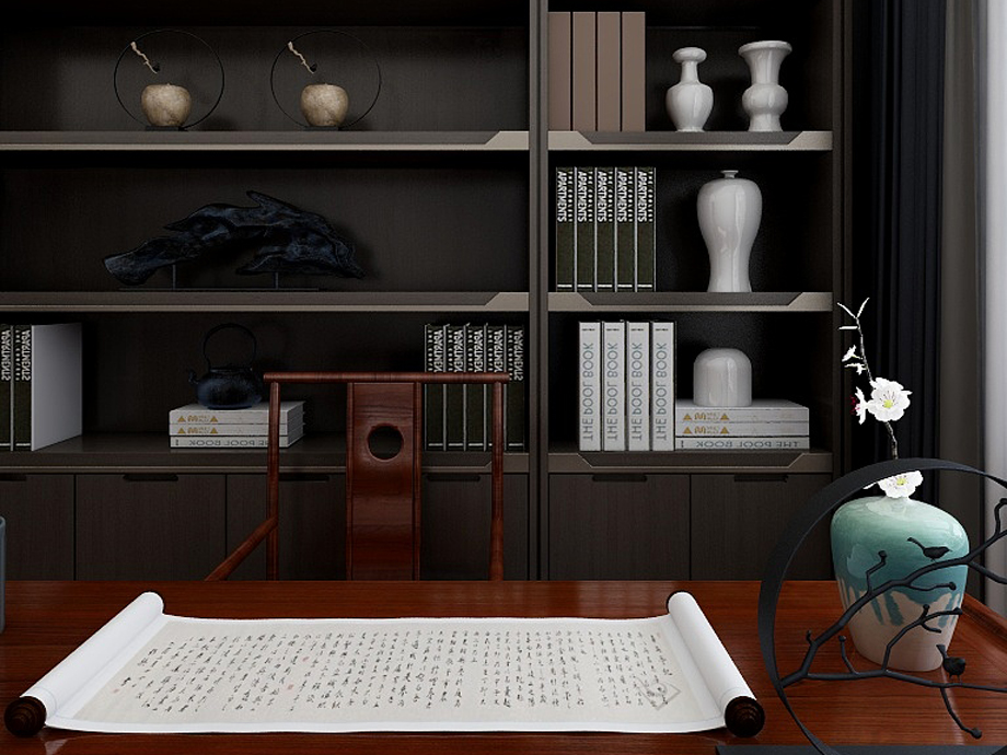 在中式風(fēng)格中常用的元素有屏風(fēng)、字畫(huà)等;