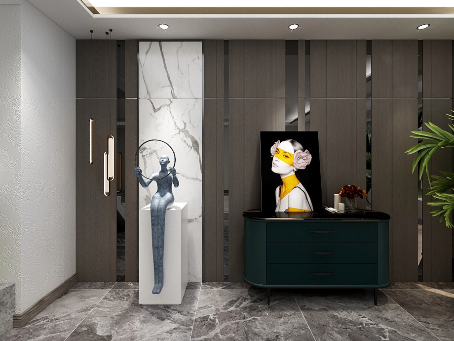 完美的結(jié)合了現(xiàn)代風與古典風,硬裝會較為偏現(xiàn)代風,家具和軟裝設計會較為偏古典風格風,總體給人的感覺就是極其時尚、奢華、有品味。